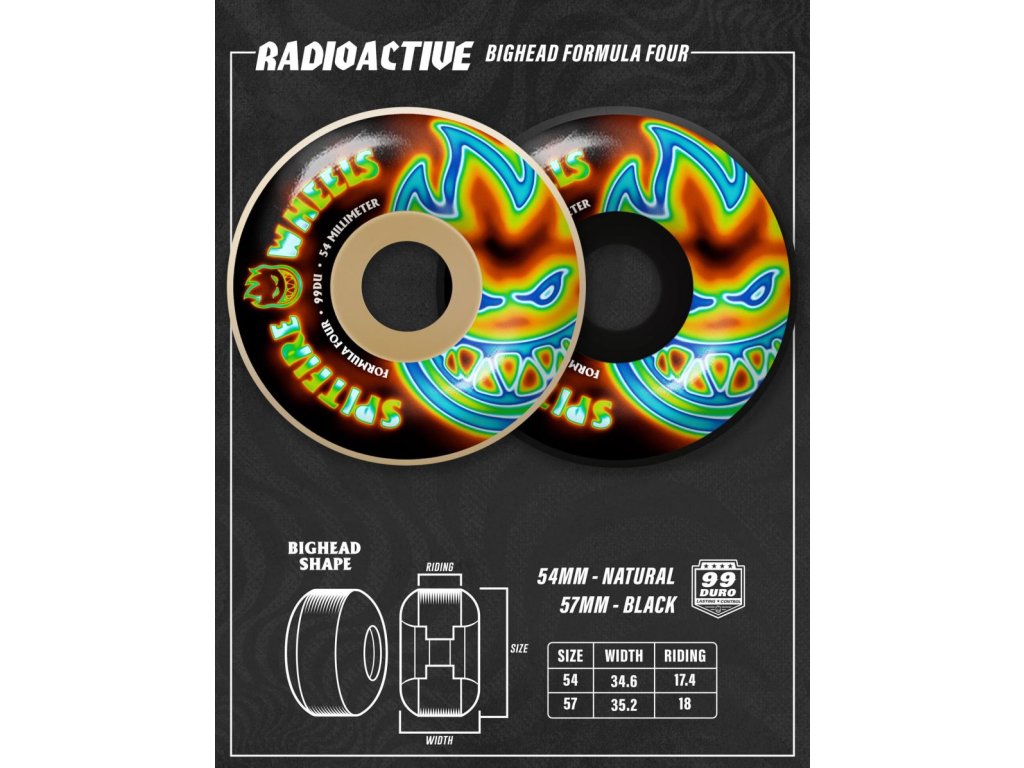 Kolečka Spitfire Formula Four Radioactive Bighead Classic Black 99du 57 mm