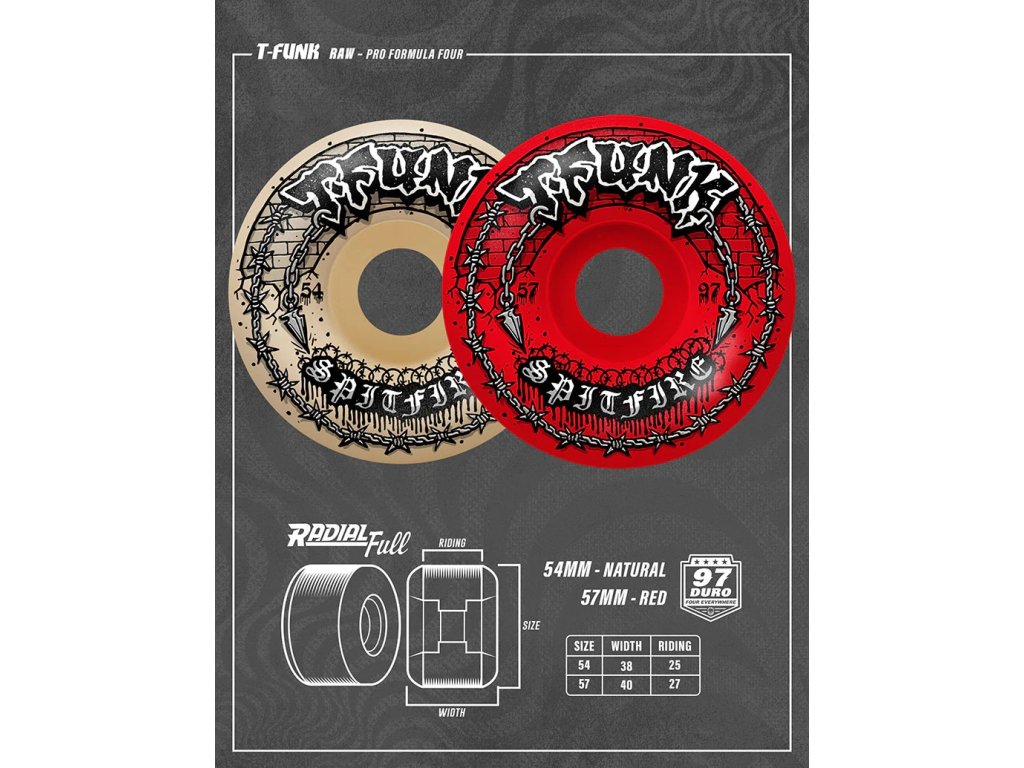 Kolečka Spitfire Formula Four T-Funk Raw Radial Full 97du 54 mm