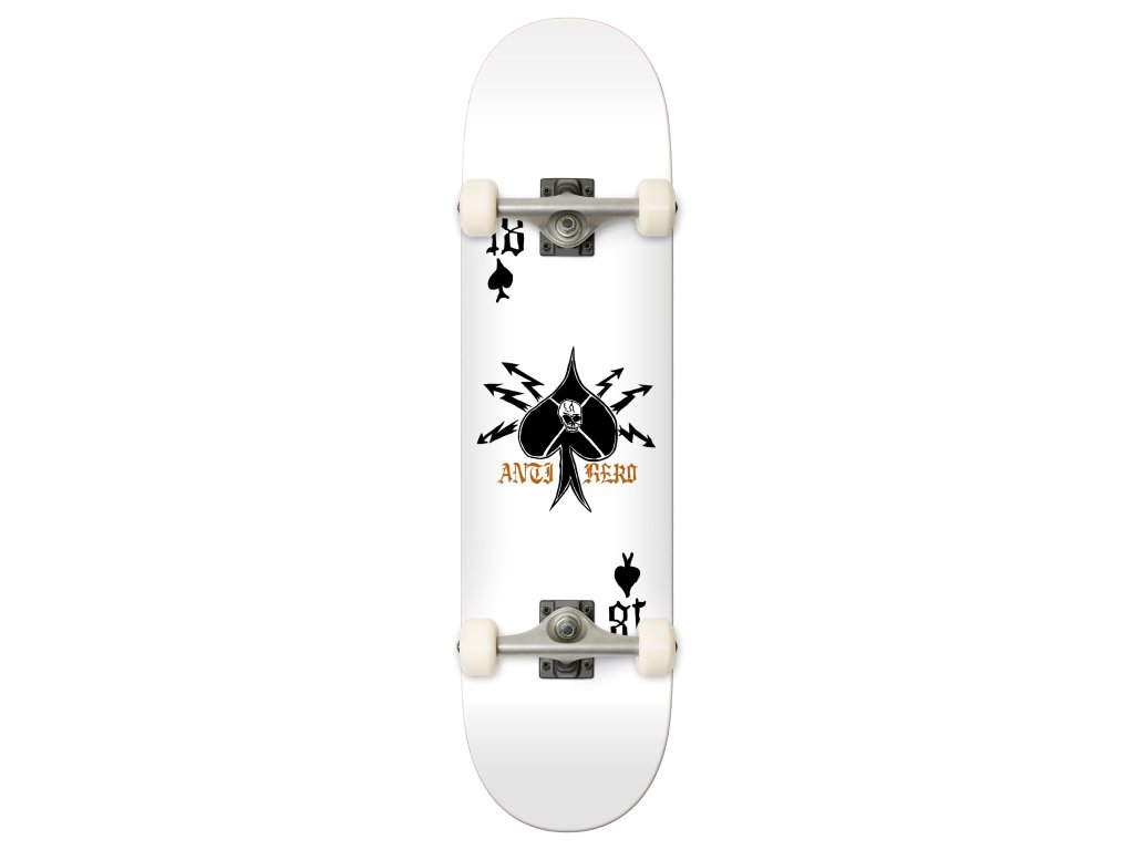 Firma Antihero skateboards, součást DLX SF distribution, je opravdovou legendou, a to hlavně mezi riderema, co nedaj dopustit na bazénový ježdění. V týmu najdete takový jména jako je Tony Trujillo, Grant Taylor nebo třeba Chris Pfanner. Pro všechny začátečníky a míň pokročilý ridery v nabídce máme i tenhle super komplet velikosti 8.5 palců s truckama sedícíma k desce a kolečkama velikosti 53 mm s ložiskama ABEC 5. Kola mají tvrdost 95 DURO, což je ideální nejen na začátky ve skateparku, ale třeba i na asfalt někde před barákem.