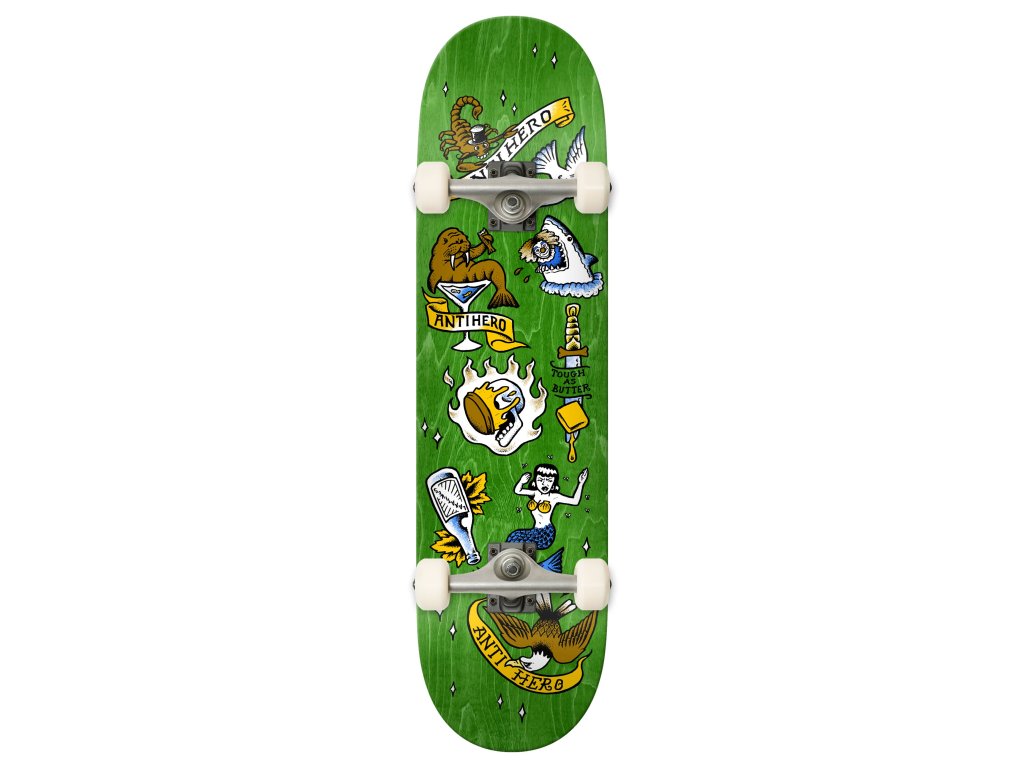 Firma Antihero skateboards, součást DLX SF distribution, je opravdovou legendou, a to hlavně mezi riderema, co nedaj dopustit na bazénový ježdění. V týmu najdete takový jména jako je Tony Trujillo, Grant Taylor nebo třeba Chris Pfanner. Pro všechny začátečníky a míň pokročilý ridery v nabídce máme i tenhle super komplet velikosti 8.25 palců s truckama sedícíma k desce a kolečkama velikosti 53 mm s ložiskama ABEC 5. Kola mají tvrdost 95 DURO, což je ideální nejen na začátky ve skateparku, ale třeba i na asfalt někde před barákem.