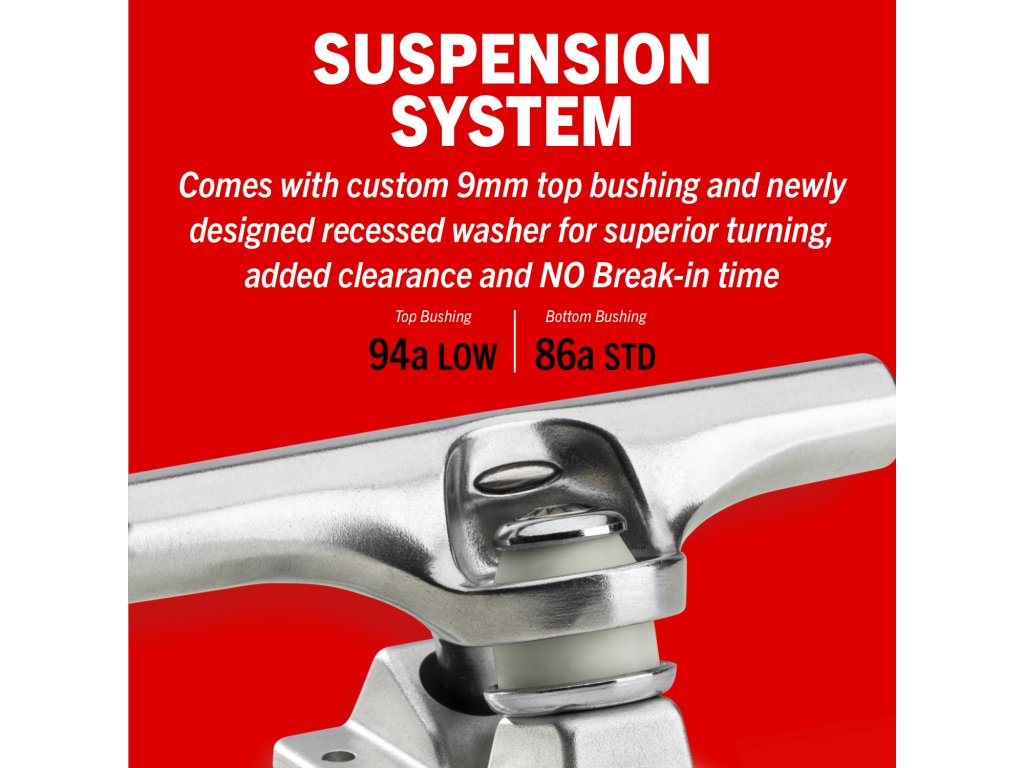 Před lety uvedenej model AF1 se dočkal i varianty s invertovaným kingpinem. Záseky při smith grindech a feeblech jsou díky tomu minulostí. Všechny další vychytávky přiblížej produktový fotky, vypíchli bychom třeba ještě precizní možnost nastavení utažení. Při utahování a povolování kingpin cvaká a vy tak víte, o kolik jste ho otočili. Za zmínku stojej třeba i patentovaný matky, který udržujou závit "dýl ve formě". Ke každýmu trucku navíc dostanete speciální černou matku, která se po zasazení do jakýhokoli skate toolu změní v závitník a dále taky Magna tool určenej na samotnej kingpin.