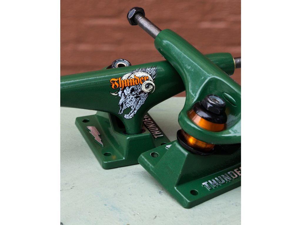 Thunder jsou bezesporu jedněmi z nejlepších trucků na světě. Kromě jinýho z jejich produkce nabízíme i tenhle luxusní týmovej model v rozměru 149. Ten je ve vysokym provedení s provrtanym kingpinem i osičkou. Tyhle trucky se perfektně hoděj na desky od 8.38 do 8.62 palců. Uvedená cena je za pár.